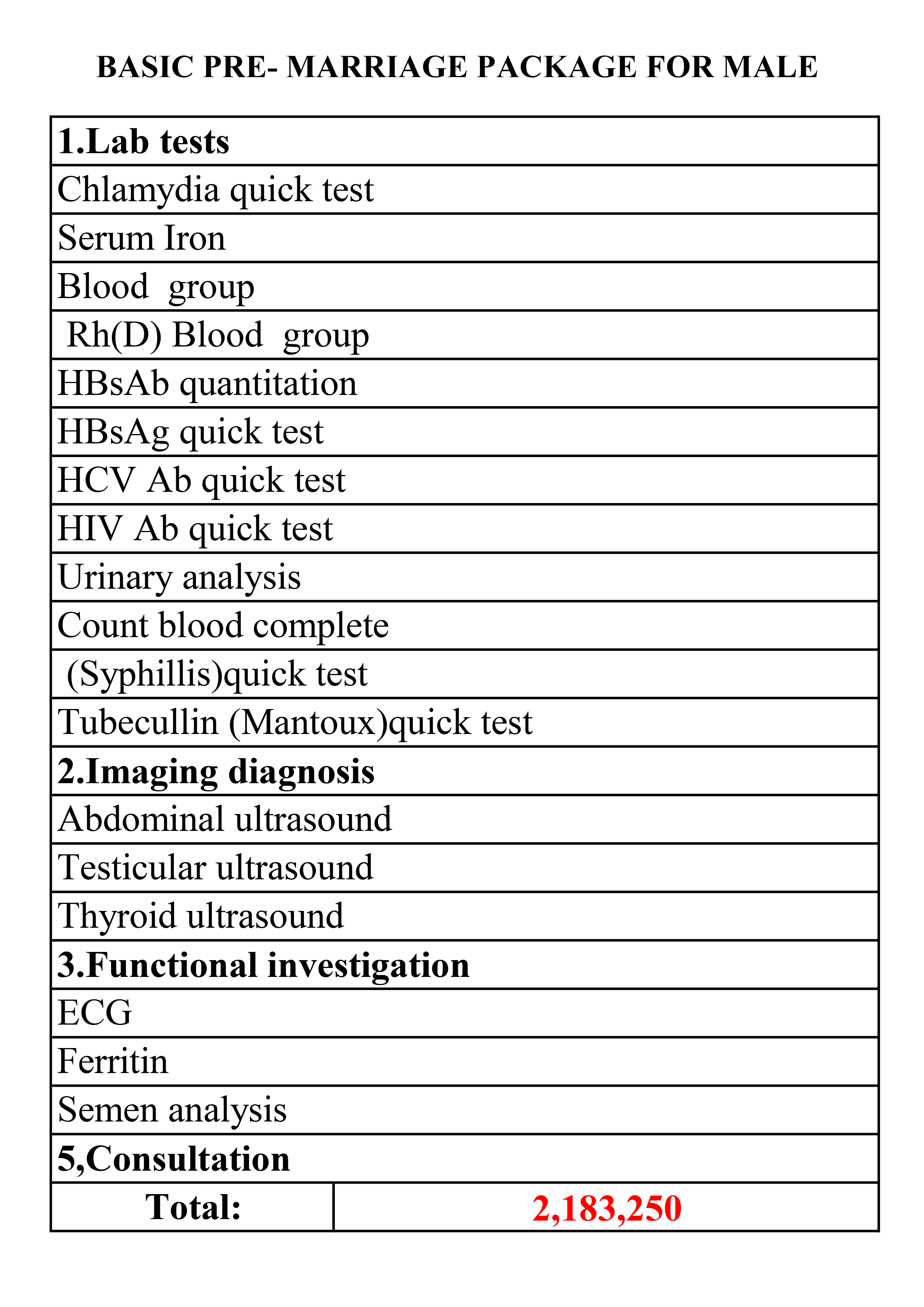 The Basic Reproductive Health Check-up Package for Man at 199 Hospital is designed to comprehensively assess gynecological health, fertility, and early detection of serious conditions such as infections, sexually transmitted diseases, abnormalities in blood, endocrine system, and abdominal tumors.