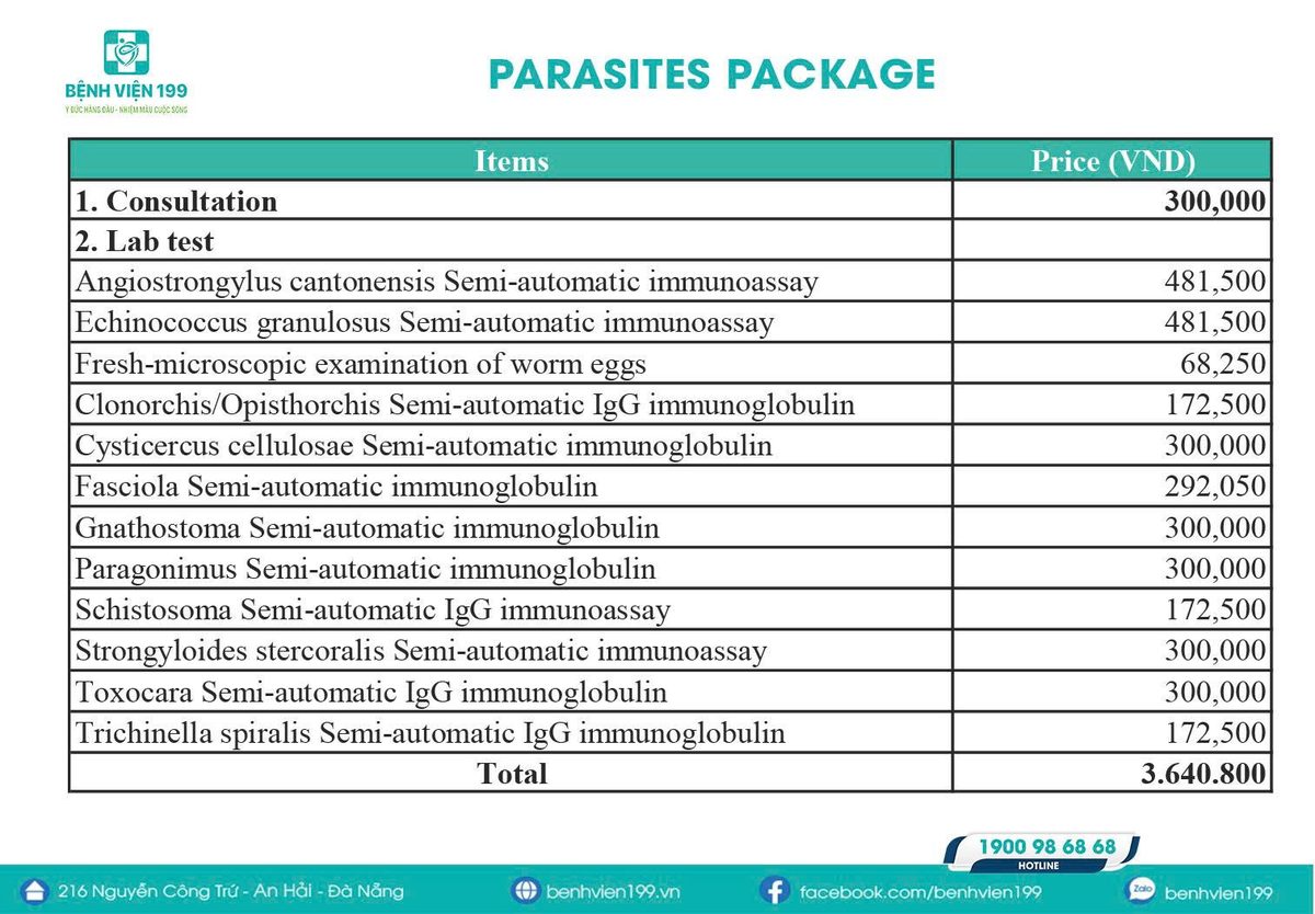This package includes a specialist consultation and a comprehensive lab panel screening for 12 different types of parasites: