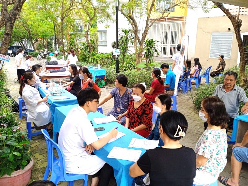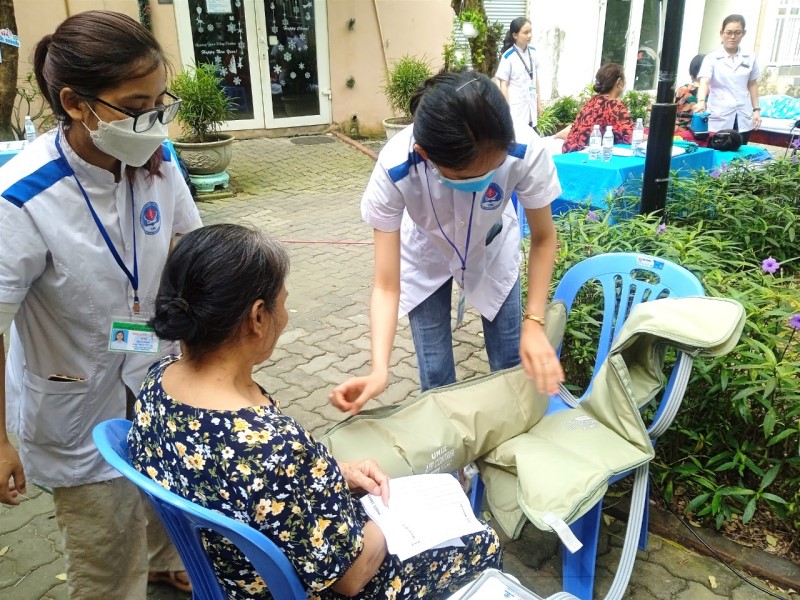 Đông đảo người dân (đối tượng chủ yếu là người cao tuổi) tới thăm khám, tư vấn sức khỏe ngay tại cộng đồng dân cư