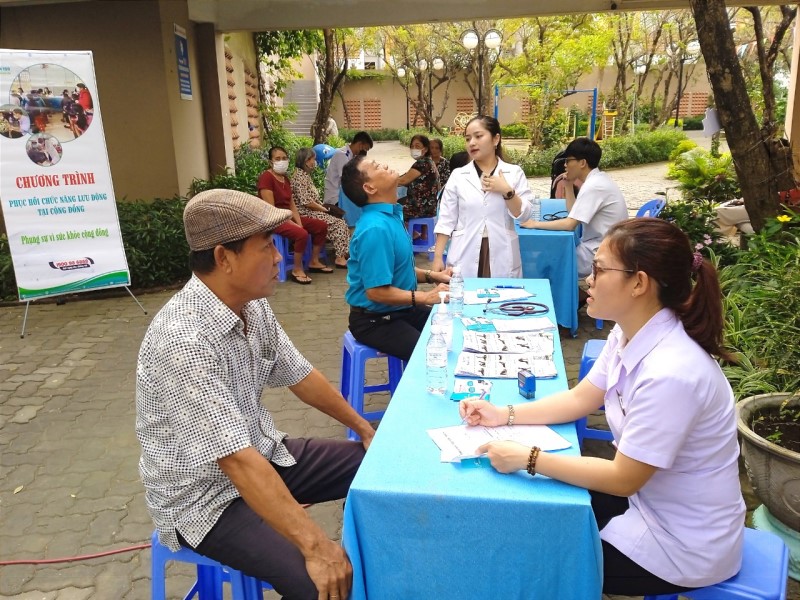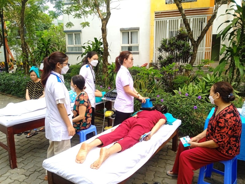 Người dân được trải nghiệm một số phương pháp trị liệu - phục hồi chức năng tại cộng đồng dưới sự hướng dẫn, tư vấn của y bác sĩ Khoa Phục hồi chức năng - Bệnh nghề nghiệp