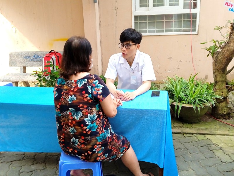 Tiếp nhận thông tin và đo huyết áp cho người dân