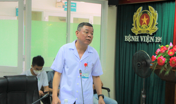 Tại buổi làm việc, TS.BS Quách Hữu Trung đã chào mừng đoàn công tác tới thăm, làm việc. Giám đốc Bệnh viện 199 đã giới thiệu tổng quan về hoạt động công tác của Bệnh viện trong các lĩnh vực khám chữa bệnh, đào tạo, công tác chỉ đạo tuyến, quản lý chất lượng,…Ngoài ra, Giám đốc cũng nhấn mạnh một số thành tựu Bệnh viện đã đạt được trong thời gian qua như chuyển đổi số, chống dịch COVID-19, mô hình điểm của cơ sở y tế Công an Nhân dân...