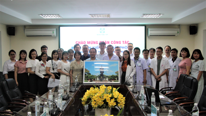 Tại buổi làm việc, hai Bệnh viện trao đổi học tập kinh nghiệm trong nhiều lĩnh vực như: Bảo lãnh viện phí, Thành lập đơn nguyên chống đau, Phục hồi chức năng, Oxy cao áp, Trung tâm Bác sĩ Gia đình, Thủ tục mua sắm vật tư, Trang thiết bị, Lọc máu, Chuyển đổi số, Bệnh án điện tử, Phương thức xây dựng giá khám chữa bệnh yêu cầu theo TT13/2023/TT-BYT, Nâng cao chất lượng chăm sóc người bệnh và năng lực điều dưỡng.