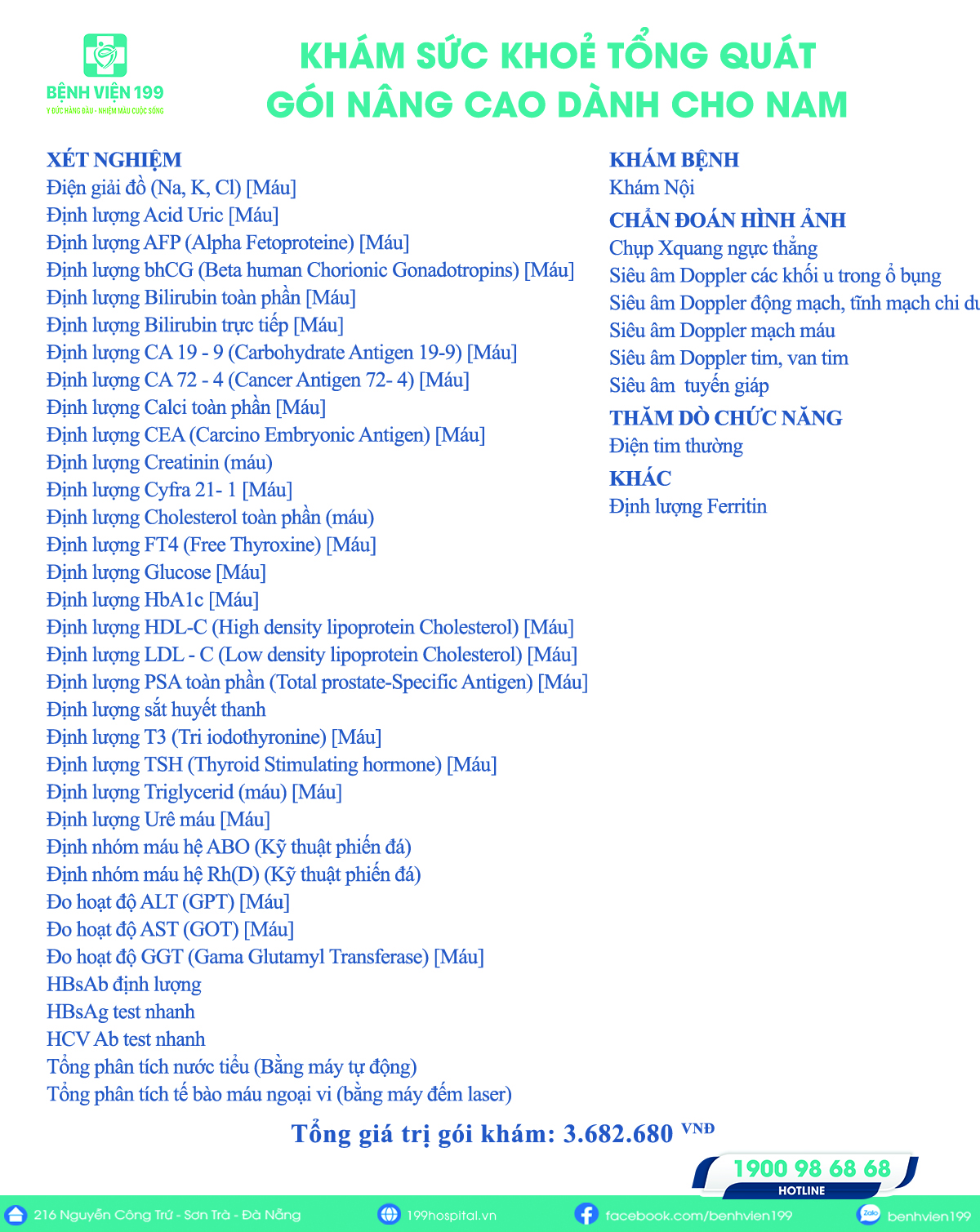 KHÁM SỨC KHỎE TỔNG QUÁT GÓI NÂNG CAO DÀNH CHO NAM