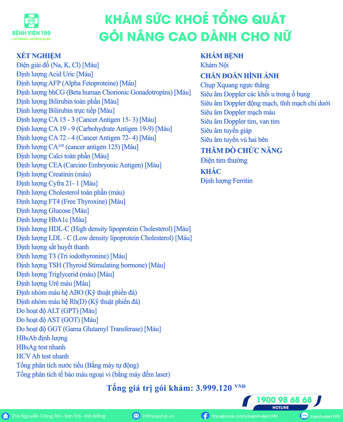KHÁM SỨC KHỎE TỔNG QUÁT GÓI NÂNG CAO DÀNH CHO NỮ