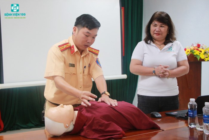 Vừa qua, Bệnh viện 199 phối hợp với Cục Cảnh sát giao thông (C08) tổ chức chương trình Huấn luyện Sơ cấp cứu ban đầu, nhằm nâng cao kiến thức và kỹ năng cứu người bị tai nạn.