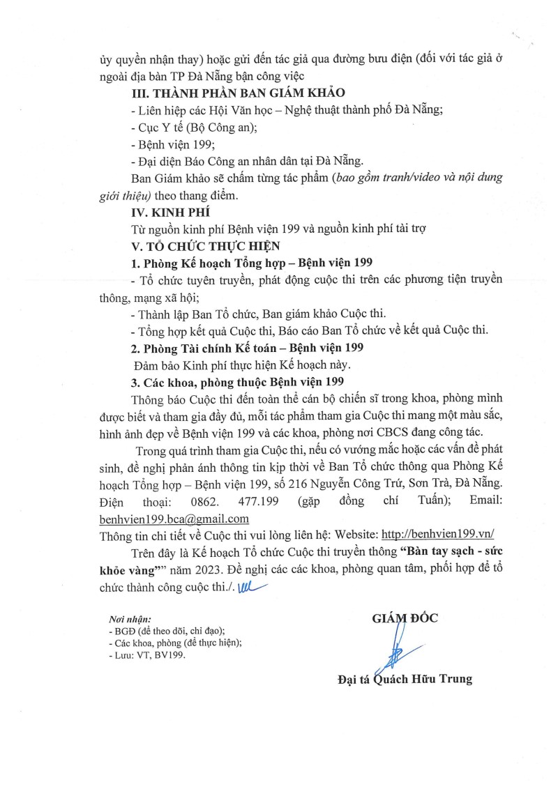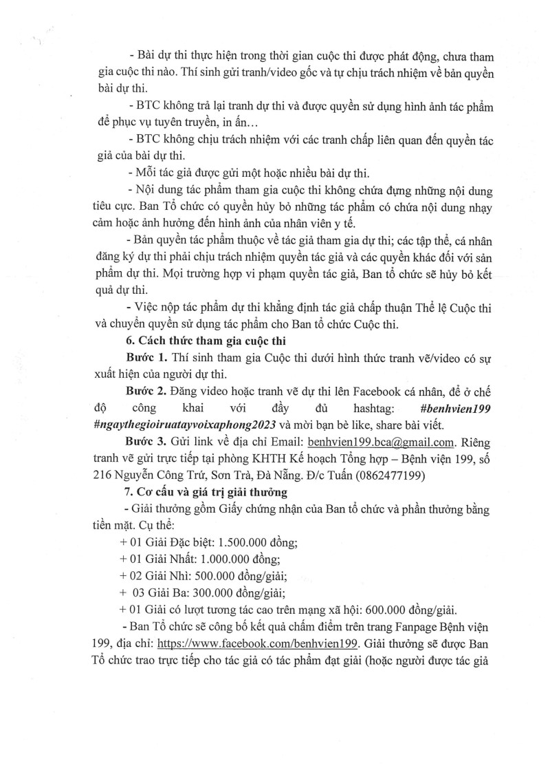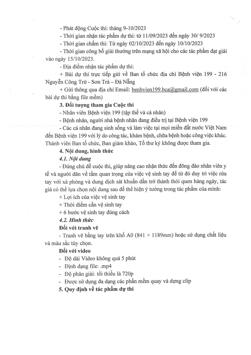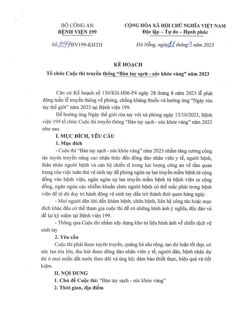 Hưởng ứng Ngày thế giới rửa tay với xà phòng ngày 15/10/2023, Bệnh viện 199 phát động cuộc thi truyền thông "Bàn tay sạch - Sức khỏe vàng" năm 2023.