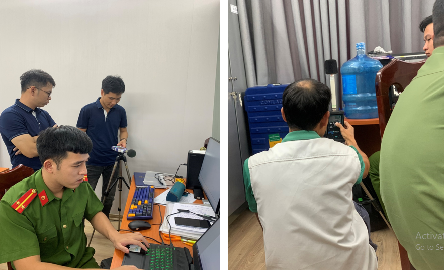 Đo tiếng ồn và điện từ trường tại Phòng Kỹ thuật hình sự - Công an TP Hà Nội