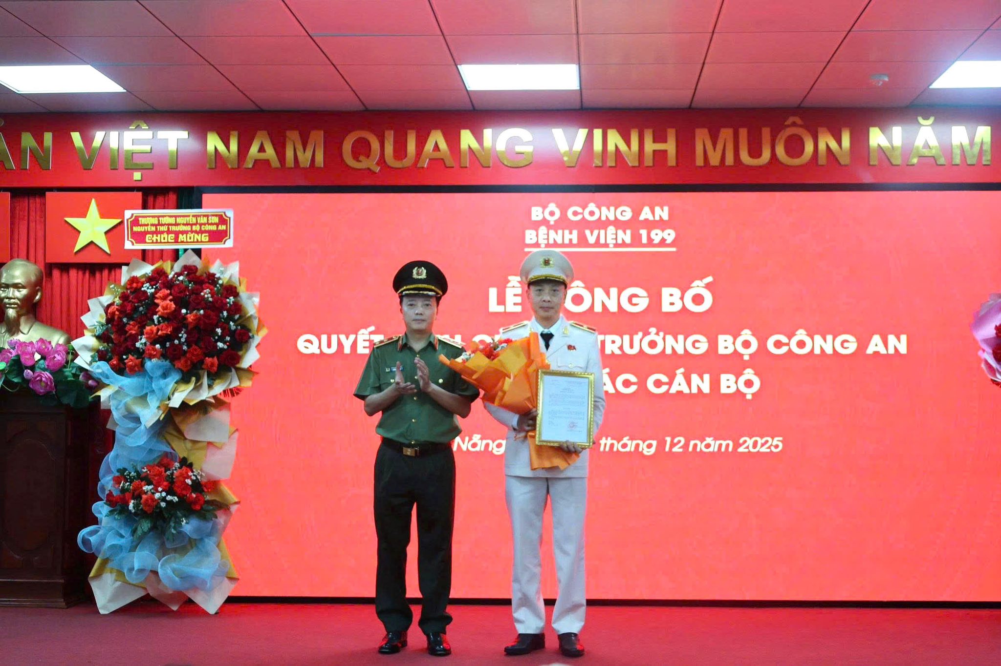 Trung tướng Đặng Hồng Đức - Thứ trưởng Bộ Công an trao quyết định cho Thiếu tướng Hoàng Thanh Tuyền