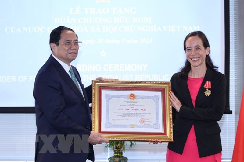 Theo đặc phái viên TTXVN, nhân dịp tham dự Phiên thảo luận Cấp cao Đại hội đồng Liên hợp quốc Khóa 78 tại New York, Hoa Kỳ, sáng 20/9 (giờ địa phương), Thủ tướng Chính phủ Phạm Minh Chính đã tiếp và trao Huân chương Hữu nghị của Nhà nước Việt Nam cho bà Aurélia Nguyen, Giám đốc Chiến lược Chương trình Liên minh Toàn cầu về Vaccine và Tiêm chủng (GAVI).