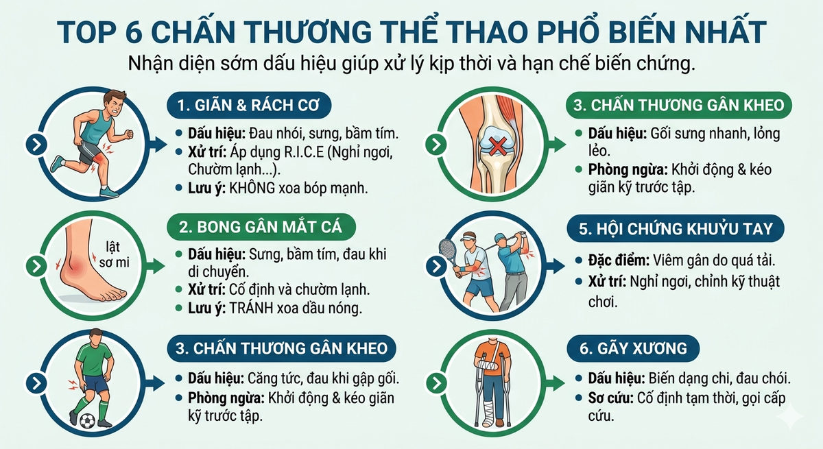 Việc nhận diện sớm các dấu hiệu đặc trưng của từng loại chấn thương sẽ giúp bạn có hướng xử lý kịp thời, hạn chế tối đa các biến chứng lâu dài.