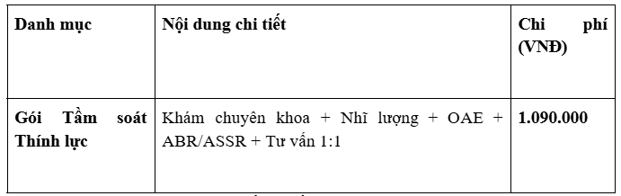 Bảng giá chi tiết gói tầm soát thính lực trọn gói