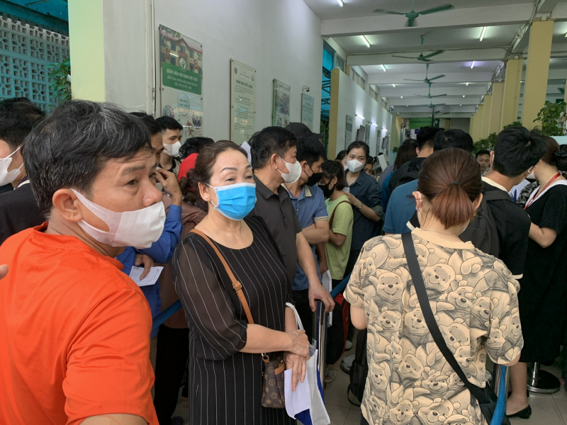 Người dân xếp hàng chờ khám tại Bệnh viện Việt Đức.